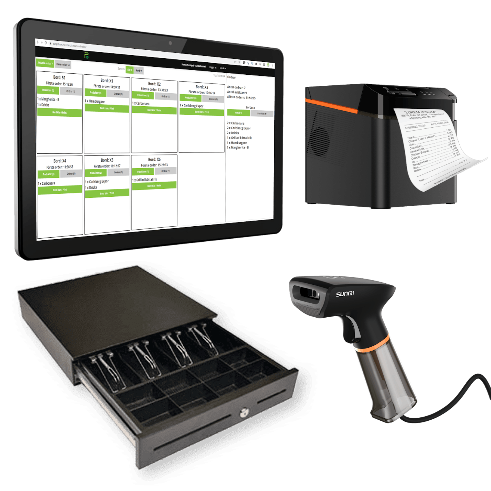 Maximera effektiviteten i din verksamhet med anpassningsbara tillbehör som fungerar sömlöst med alla Purspots kassasystem. Oavsett om du behöver en KDS-skärm för smidigare kökshantering, en scanner för snabbare varuregistrering, en pålitlig kvittoskrivare eller en säker kassalåda, har vi rätt lösning för dig och din versksamhet.